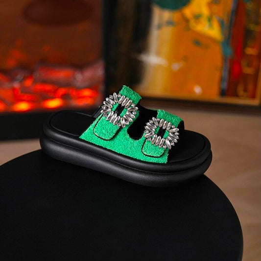 Women's Open-Toe Bling Buckle Slip-On Sandals